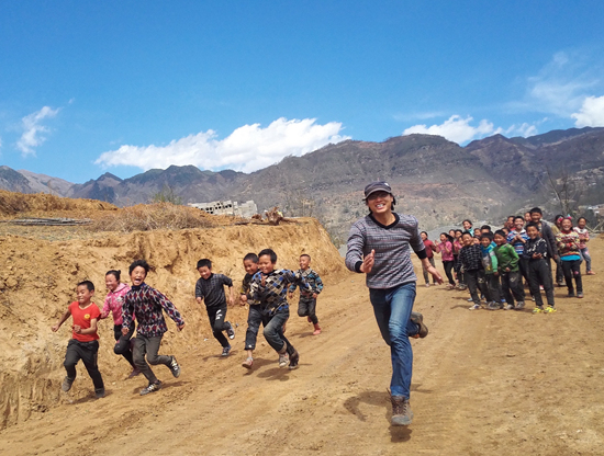 村里通路了,劉建華和學(xué)生們在賽跑。劉建華/供圖