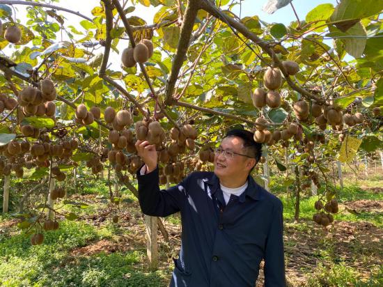 10月18日,李才國正在果園查看獼猴桃長(zhǎng)勢(shì)。新華社記者李偉 攝