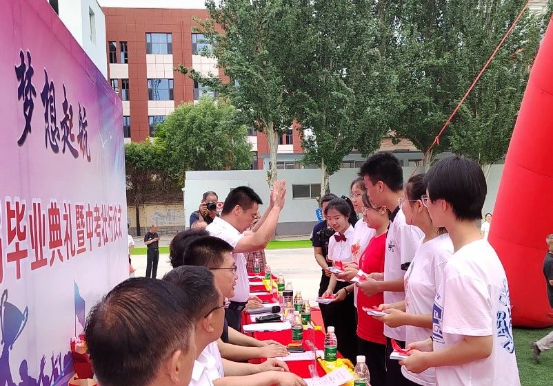趙俊瑞校長為初三學子頒發(fā)畢業(yè)證書,隨著一份份畢業(yè)證書的發(fā)放,畢業(yè)生們與五中的故事也將落下帷幕,但青春不散,記憶不散。