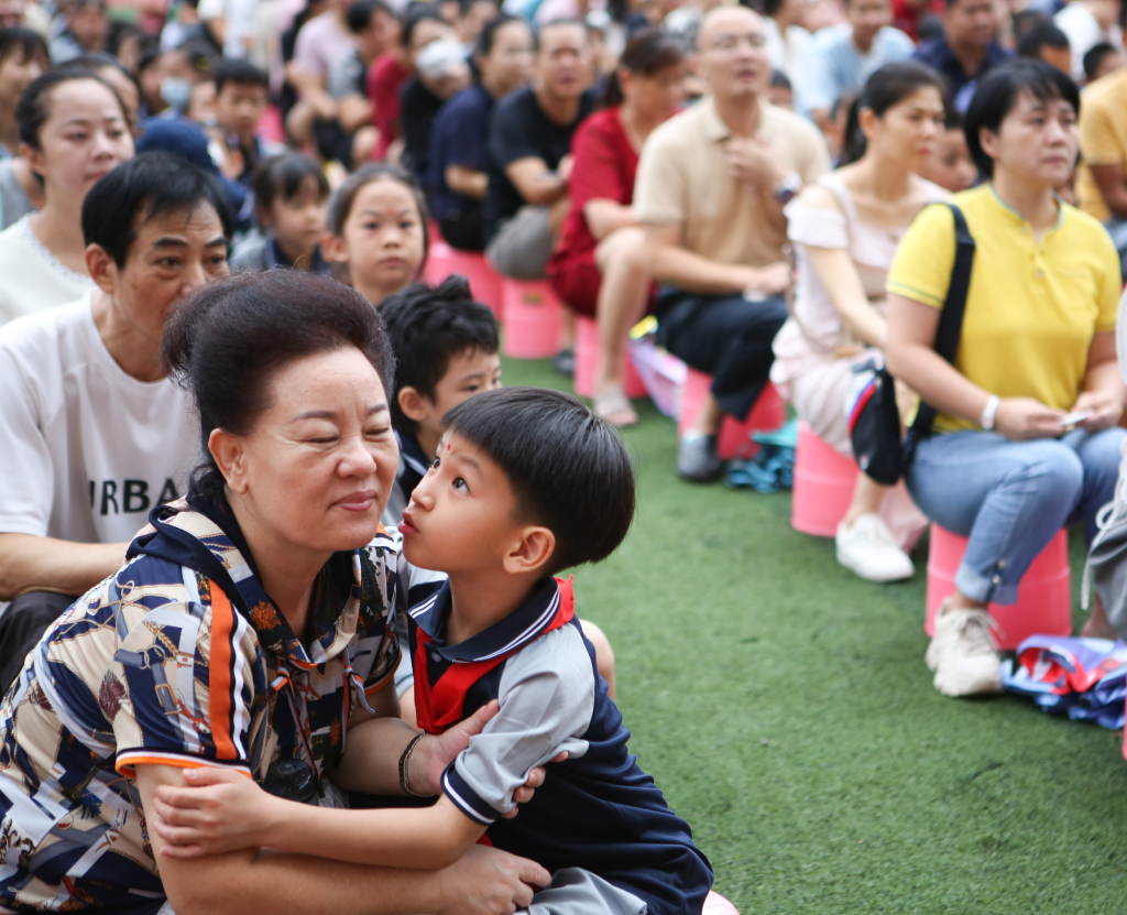 ??谑杏裆硨?shí)驗(yàn)學(xué)校一年級(jí)新生和家長(zhǎng)在“開(kāi)筆禮”儀式活動(dòng)現(xiàn)場(chǎng)。新華社記者樊雨晴 攝