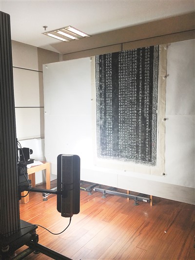 對(duì)石刻拓片進(jìn)行古籍?dāng)?shù)字化拍攝。中國國家圖書館供圖