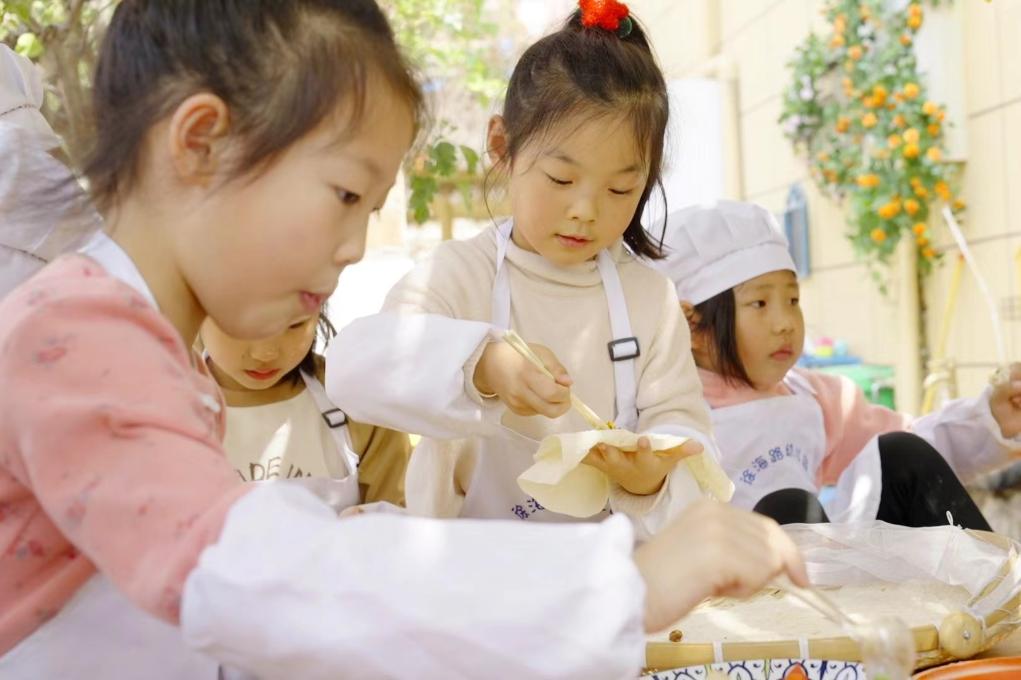 烙餅、包餃子、蒸窩窩頭……近期,江蘇省徐州市徐海路幼兒園的勞動(dòng)教育活動(dòng)走紅網(wǎng)絡(luò)。孩子們做起飯來全神貫注,手法有模有樣,受到眾多網(wǎng)民的點(diǎn)贊追捧,甚至有外省家長(zhǎng)帶孩子前來咨詢?nèi)雸@。