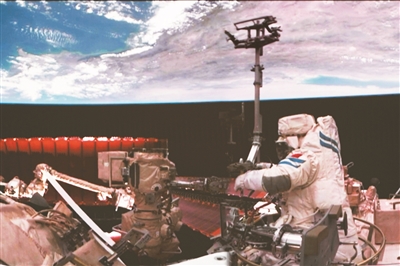 神舟十八號(hào)航天員李聰在空間站組合體艙外作業(yè)。新華社發(fā)