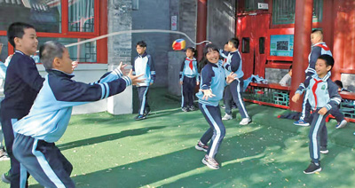 北京市東城區(qū)黑芝麻胡同小學(xué)圓恩寺校區(qū)位于一條胡同里,空間略顯局促。學(xué)校發(fā)布了“課間活動征集令”,把課間15分鐘交給學(xué)生自己設(shè)計和策劃。“編花籃3個人就能玩,不占地方”“可以觀察、養(yǎng)護池塘邊的植物”“華容道、九連環(huán)”……學(xué)生們紛紛為課間活動支招。
