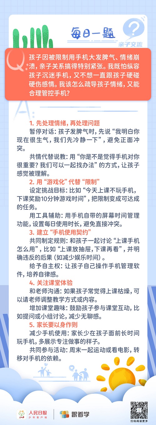 每日一題丨限制孩子使用手機導(dǎo)致其情緒崩潰,如何緩解親子關(guān)系?