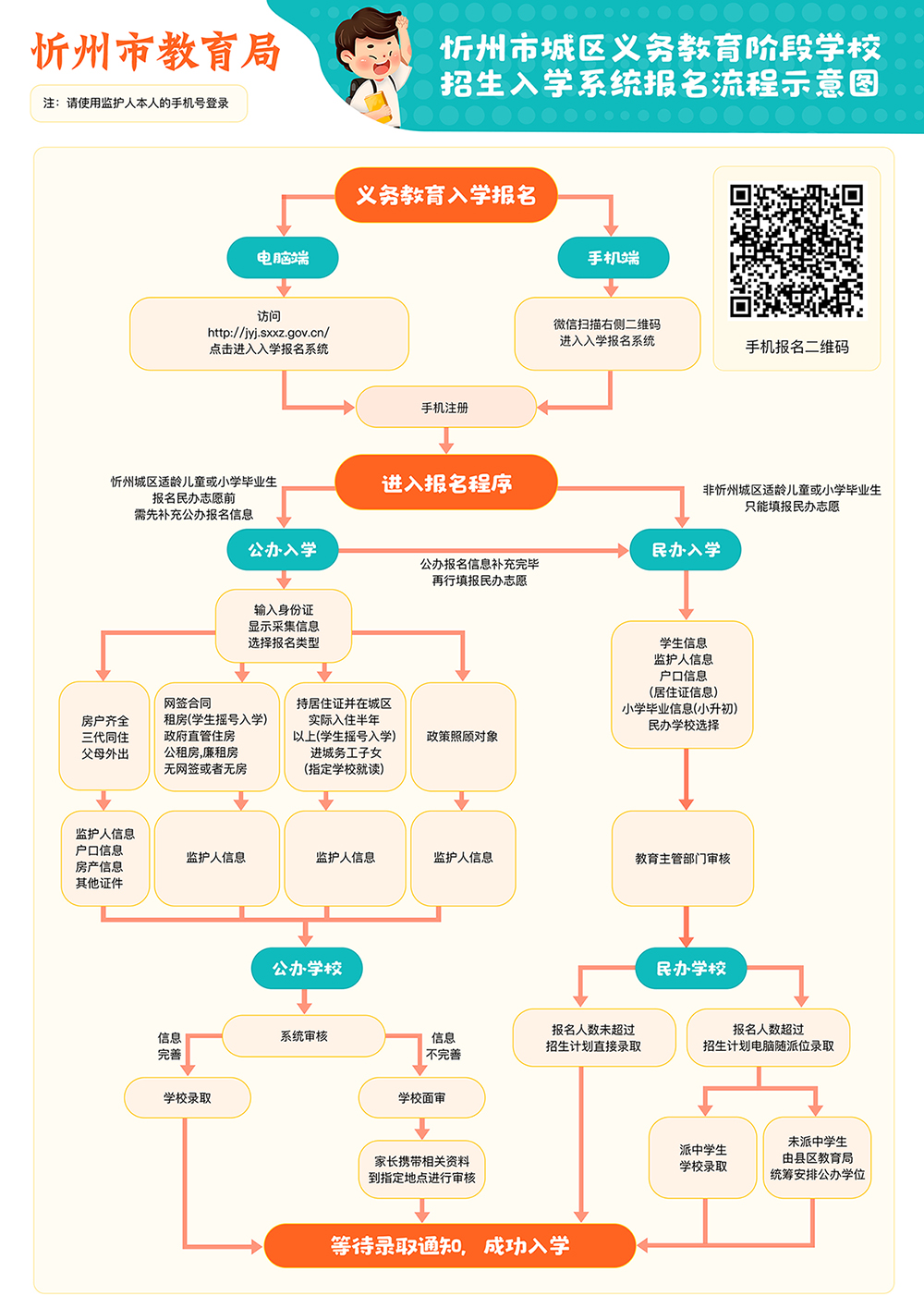 忻州市城區(qū)義務教育階段學校招生入學系統(tǒng)報名流程示意圖