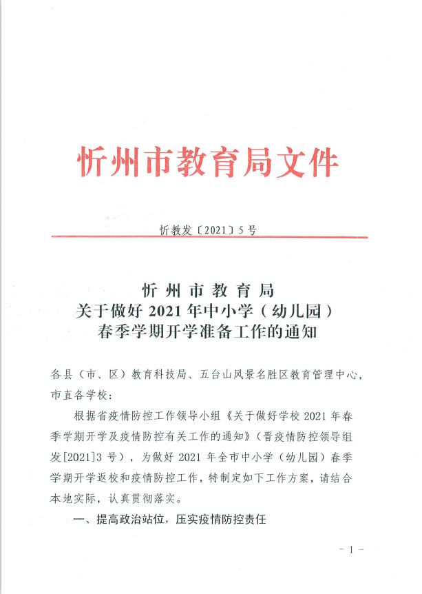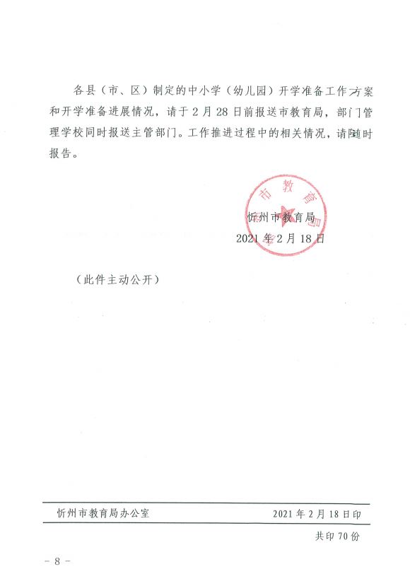 忻州市教育局關(guān)于做好2021年中小學開學準備工作的通知