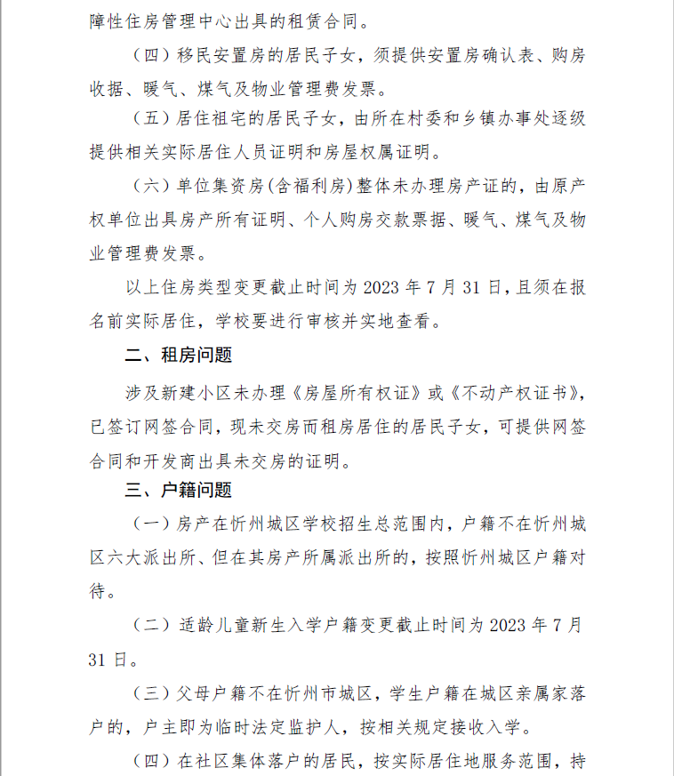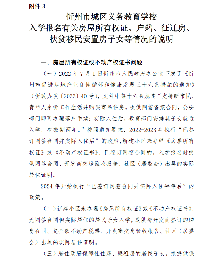 附:忻州市城區(qū)義務(wù)教育學(xué)校入學(xué)報名有關(guān)房屋所有權(quán)證、戶籍、征遷房、扶貧移民安置房子女等情況的說明