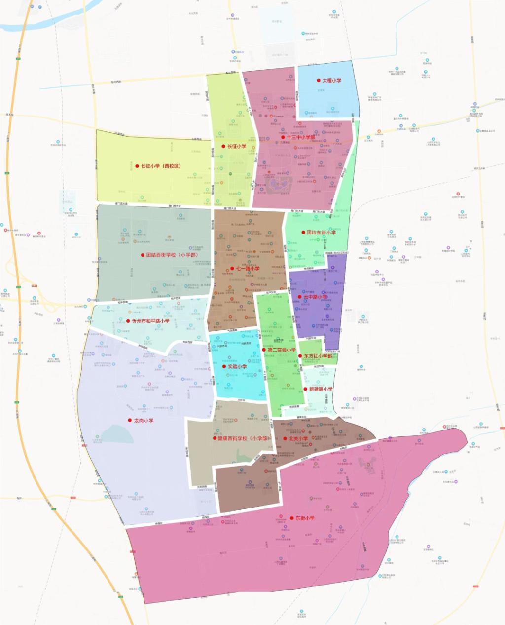忻州市城區(qū)小學(xué)學(xué)校服務(wù)范圍圖