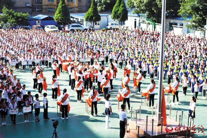“老師,您辛苦了!”活動(dòng)現(xiàn)場(chǎng),少先隊(duì)員為前來上課的老師們以及馬路邊維持交通秩序的交警叔叔、護(hù)學(xué)崗志愿者鞠躬敬禮并戴上鮮艷的紅領(lǐng)巾,表達(dá)了同學(xué)們對(duì)老師、對(duì)長(zhǎng)輩最誠摯的敬意?!爸x謝孩子們,這是我們應(yīng)該做的。祝同學(xué)們健康成長(zhǎng)!”老師、叔叔阿姨回以鼓勵(lì)的話語。大會(huì)對(duì)學(xué)校師德標(biāo)兵、模范教師、優(yōu)秀班主任、先進(jìn)工作者進(jìn)行了表彰。