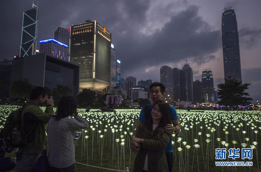 2月13日,市民在參觀玫瑰花燈。 當(dāng)日,來(lái)自韓國(guó)首爾的LED Rose Garden大型公共展覽亮相香港。25000朵LED白玫瑰花燈在中環(huán)海濱展出,在情人節(jié)即將到來(lái)之際點(diǎn)亮維港,營(yíng)造出浪漫甜蜜的氛圍。新華社記者 呂小煒 攝