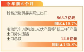 全省上半年“新三樣”出口同比增長(zhǎng)135.8%