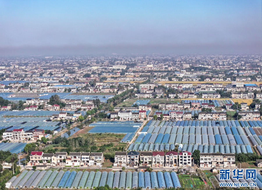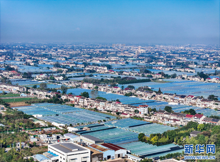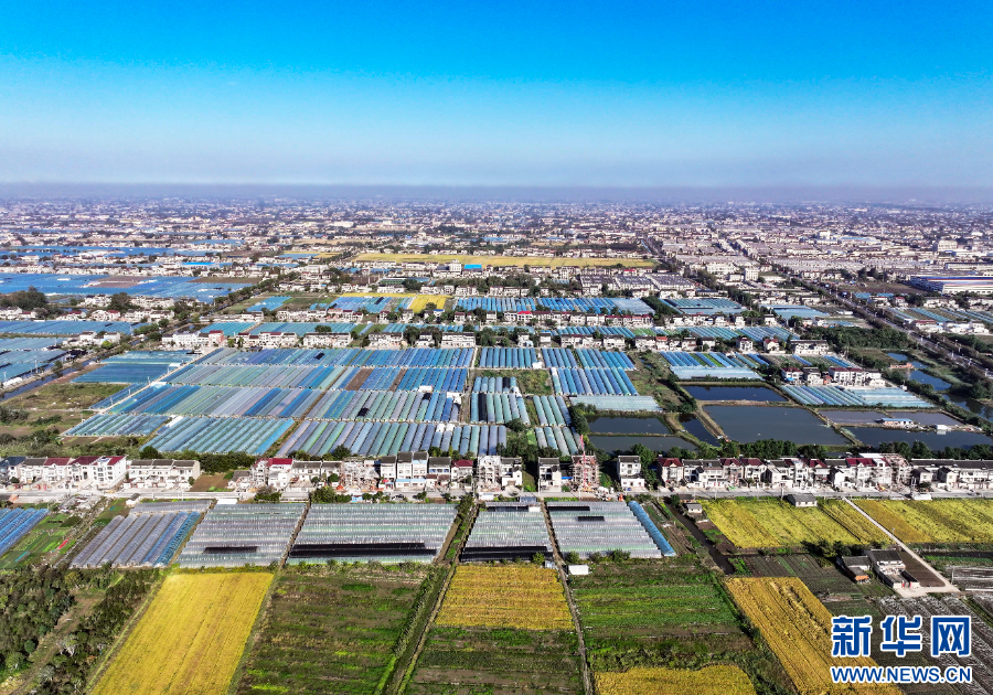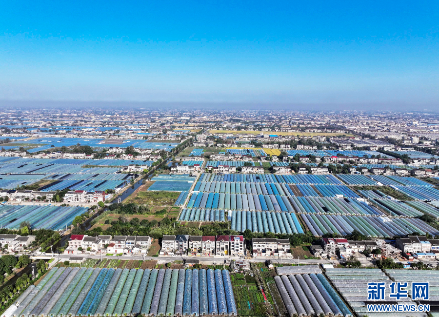 深秋時(shí)節(jié),從空中俯瞰江蘇省靖江市馬橋鎮(zhèn)橫港村,整片的蔬菜大棚、錯(cuò)落有致的民居,田園風(fēng)光美如畫卷。