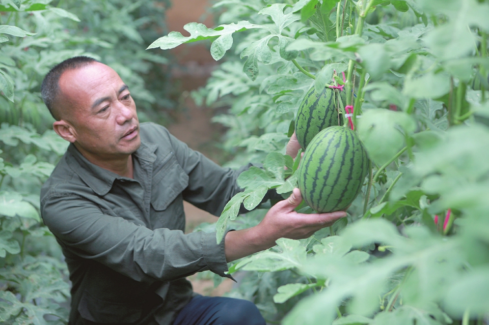從西紅柿、香瓜到西瓜,合作社基地在周邊積累了穩(wěn)定客源,形成“采摘經(jīng)濟(jì)”與零售批發(fā)雙渠道銷售模式。定襄縣農(nóng)業(yè)技術(shù)服務(wù)中心賈明山介紹,近年來,定襄縣依托晝夜溫差大、光照充足的氣候優(yōu)勢,通過土地流轉(zhuǎn)整合資源,推廣“合作社+基地+農(nóng)戶”經(jīng)營模式。為了引導(dǎo)農(nóng)民發(fā)展設(shè)施農(nóng)業(yè),解決村中富余勞動(dòng)力,縣農(nóng)業(yè)農(nóng)村局去年投入60余萬元,對(duì)全縣30余座老舊大棚進(jìn)行了改造。僅邢俊成的合作社就吸納了周邊20余戶村民就業(yè),從整地、育苗、授粉到采摘,每個(gè)環(huán)節(jié)都成了當(dāng)?shù)剞r(nóng)戶的“增收點(diǎn)”。