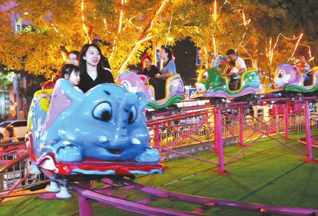 8月21日,游客在城區(qū)大欣城夜市體驗(yàn)游樂設(shè)施。暑期以來,城區(qū)“夜經(jīng)濟(jì)”熱度持續(xù)攀升,多彩的夜間消費(fèi)讓城市持續(xù)煥發(fā)活力。本報(bào)記者 宮清華攝