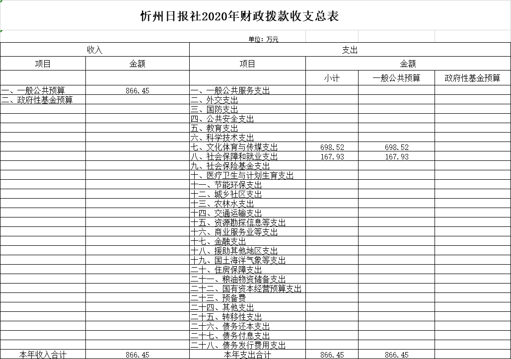 忻州日報社2020年收入預(yù)算866.45萬元,比2019年增加15.62萬元。