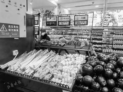 2日8時許,山西晚報記者在北京華聯(lián)超市太航店看到,各類新鮮蔬菜應(yīng)有盡有,促銷員不停地喊著“白菜、蘿卜、土豆六毛九一斤,紅薯九毛一斤,杏鮑菇兩塊九毛九一斤!”不少市民圍在這些特價蔬菜前仔細(xì)挑選,而在蔥姜蒜區(qū)域,卻幾乎沒有市民選購。
