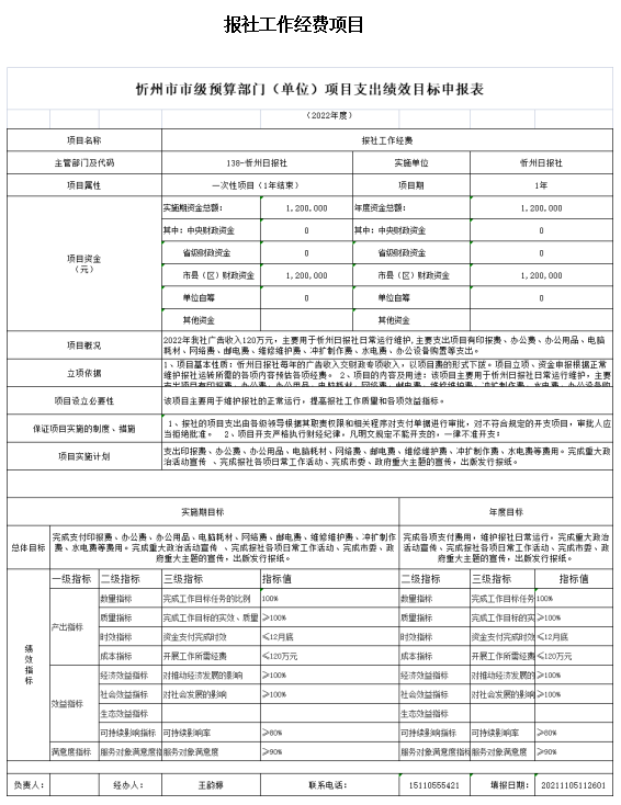 2022年忻州日報社實行績效目標管理的項目3個,涉及一般公共預算當年撥款330.4萬元。