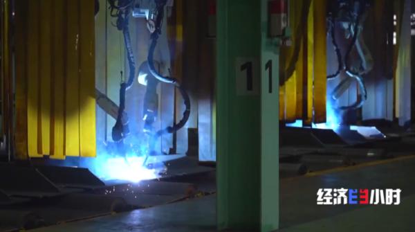 南通中遠海運川崎公司機器人焊接生產線組長 丁瑞東:我們有三條機器人焊接生產線,相比傳統人工效率的話,有效提高60%左右,生產周期縮短50%。