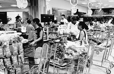 由于巴西通貨膨脹攀升導致消費不振,民眾購物更趨謹慎。圖為在里約熱內盧一家超市,當地民眾在采購生活必需品。記者 顏 歡攝