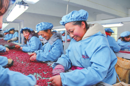 既抓良種繁育,又抓綠色種植技術(shù)推廣。今年,岢嵐縣以“龍頭企業(yè)+鎮(zhèn)村”的模式,建設(shè)4個(gè)綠色種植基地共計(jì)5830畝,讓加工銷售企業(yè)的綠色理念直達(dá)農(nóng)戶,讓技術(shù)要求和品種選用落實(shí)到地頭,帶動(dòng)全縣建成紅蕓豆標(biāo)準(zhǔn)化生產(chǎn)基地8.4萬畝。紅蕓豆出口商煒嵐工貿(mào)有限公司生產(chǎn)經(jīng)理劉永旺說:“今年市場(chǎng)需求旺盛,價(jià)格一路走高,從我們掌握的信息來看,大多數(shù)農(nóng)戶在每斤6元的時(shí)候出售。全縣農(nóng)民銷售紅蕓豆一項(xiàng)就在1.5億元以上,發(fā)展紅蕓豆產(chǎn)業(yè)經(jīng)濟(jì)效益十分可觀?!?/p>