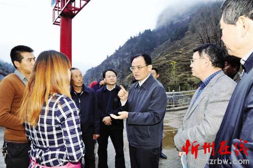 圖為市委副書記、 市長(zhǎng)鄭連生在代縣神澗村與縣鄉(xiāng)村干部探討農(nóng)村貧困人口脫貧大計(jì)。 石俊文 攝