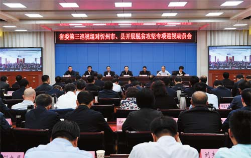 圖為省委第三巡視組對(duì)忻州市、縣開(kāi)展脫貧攻堅(jiān)專(zhuān)項(xiàng)巡視動(dòng)員會(huì)會(huì)場(chǎng)。本報(bào)記者 劉紀(jì)森 攝