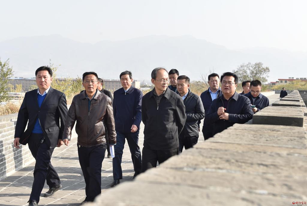 代州古城西門甕城及西城墻是代州古城舊址的一部分,西城墻是代州古城墻的重要組成部分。鄭連生一行登上氣勢雄偉、高大堅固的西門甕城及西城墻,一覽代州古城巧奪天工的建筑風(fēng)格。鄭連生強調(diào),代縣作為全國歷史文化名城,對文物保護及城墻等古跡的修復(fù)保護要“修舊如故,以存其真”,要追求“原汁原味”,真正把文物完完整整地保護起來、利用下去,讓文物活起來。要把代縣這一歷史文化名城真正打造成對外開放的窗口、產(chǎn)業(yè)升級的平臺、招商引資的樞紐、經(jīng)濟發(fā)展的高地。