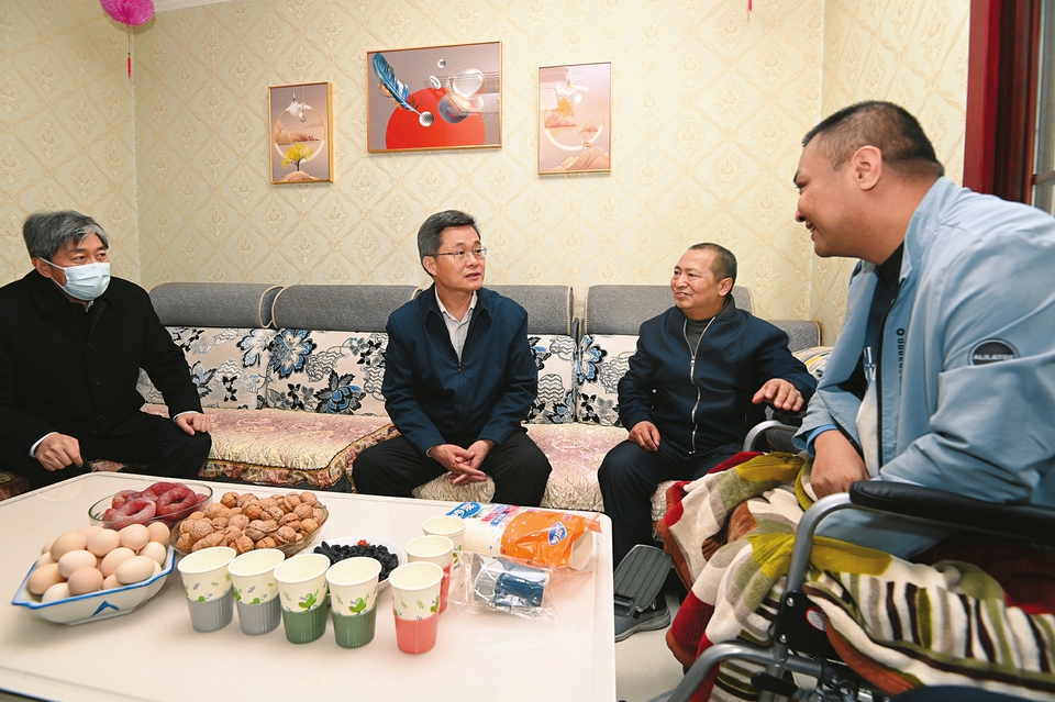 4月21日下午,省委書記藍佛安來到忻州市定襄縣晉昌鎮(zhèn)北城社區(qū),了解脫貧群眾郝生偉、郝華君父子二人的身體、生活狀況和享受救助政策情況。本報記者史曉波攝