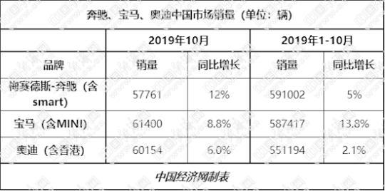 今年四季度首月,在整體車市回暖不及預(yù)期的情況下,引領(lǐng)高檔車市場的奔馳、寶馬、奧迪均交出不俗成績,全面實現(xiàn)正向增長。10月,寶馬、奧迪在華銷量均超6萬輛;奔馳則以12%的兩位數(shù)增長,成為當(dāng)月BBA中增速最高的品牌。