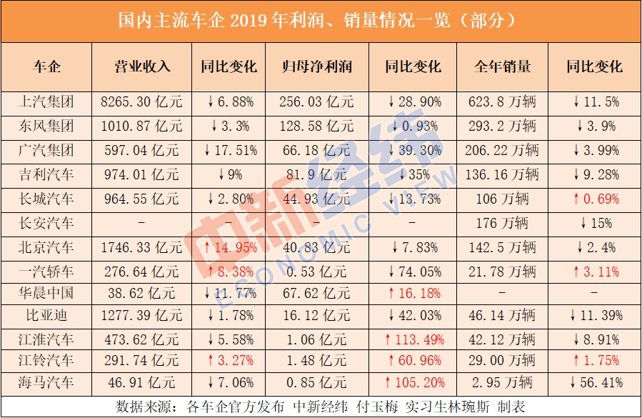 2019年車企成績單出爐,中新經(jīng)緯記者經(jīng)統(tǒng)計(jì)發(fā)現(xiàn),營收、凈利雙降幾乎成了各大主流車企的趨勢。而少數(shù)逆勢扭虧為盈者,或因變賣資產(chǎn)、或因收巨額補(bǔ)貼等均非主業(yè)所得……梳理得知,市場疲軟及銷量下滑是車企對(duì)全年表現(xiàn)不盡如人意的普遍解釋。