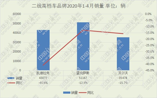 4月,二線高檔車市場呈現(xiàn)加速回升之勢,凱迪拉克、雷克薩斯、沃爾沃均實(shí)現(xiàn)同比正增長,為二季度發(fā)展奠定良好開局。從前4月來看,雷克薩斯率先突破5萬輛,并將其與凱迪拉克的銷量差距拉大至8000余輛。