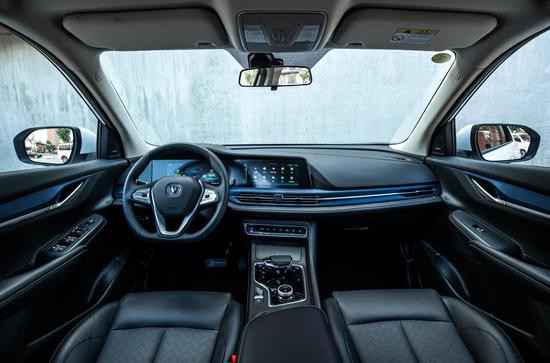內(nèi)飾方面,長安新能源CS55純電版搭載了10.25寸雙聯(lián)大屏設(shè)計,支持AI小安、在線娛樂、車載微信、手機無線充電、索尼音響、四路環(huán)視行車記錄儀以及遠程控制等功能。車門把手、貫穿式空調(diào)出風口等處都加入了藍色元素裝飾,用以展示其新能源車身份。在用料上,新車使用了能明顯提高檔次的軟質(zhì)材料、皮質(zhì)包覆和鋼琴漆飾板,為用戶帶來全新豪華智慧出行體驗。