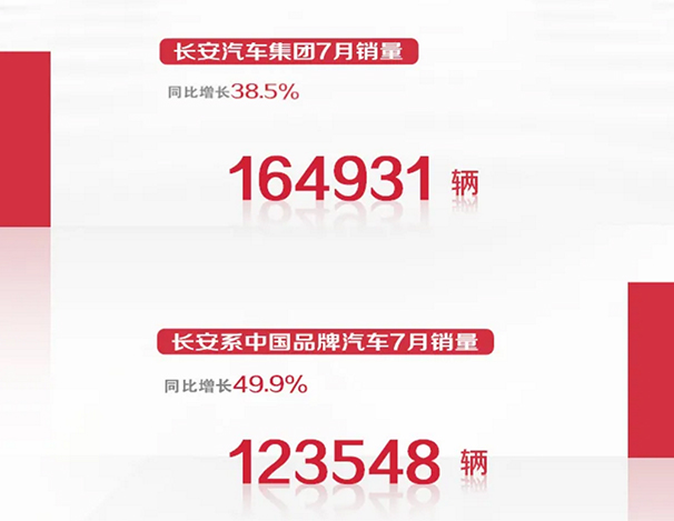 新華網(wǎng)北京8月8日電 8日,長安汽車對(duì)外公布的數(shù)據(jù)顯示,2020年7月延續(xù)上升勢頭,長安汽車單月整體銷售164931輛,同比增長38.5%。其中,長安系中國品牌汽車7月銷量達(dá)到123548輛,同比增長達(dá)49.9%。