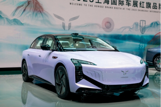 在綠色。低碳、創(chuàng)新理念的驅(qū)動(dòng)下,紅旗品牌確定了新能源汽車全球戰(zhàn)略,以全新的理念、標(biāo)識(shí)、設(shè)計(jì)語(yǔ)言和前沿技術(shù)架構(gòu),全速、全域推動(dòng)電動(dòng)化進(jìn)程。紅旗新能源子品牌的標(biāo)識(shí)是“旗妙雙翼”,寓意“雛鷹展翅、生命激發(fā)”,宣示著紅旗新能源關(guān)切自然、珍愛生命,聚焦新能源、聚力綠色智慧出行的戰(zhàn)略理念。紅旗新能源子品牌的兩款全新車型紅旗E001與紅旗E202在車展上亮相。