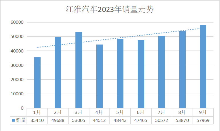 2023年10月10日,安徽江淮汽車集團股份有限公司(以下簡稱“江淮汽車”)發(fā)布《安徽江淮汽車集團股份有限公司2023年9月產(chǎn)、銷快報》。快報顯示:2023年9月,江淮汽車銷量為5.80萬輛,同比增長21.59%,連續(xù)8個月實現(xiàn)同比正增長;1-9月累計銷售44.12萬輛,同比增長18.70%。