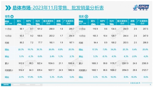 對(duì)于后期車市,乘聯(lián)會(huì)表示,今年12月是小月,元旦休假有兩天在12月。12月有21個(gè)工作日,相對(duì)2022年12月的22個(gè)工作日少一天,加之年末最后兩天休假,預(yù)計(jì)今年部分年銷量將結(jié)轉(zhuǎn)到明年,這必將對(duì)2024年的開(kāi)門紅有很好的支撐效果,也有利于明年經(jīng)濟(jì)增長(zhǎng)。
