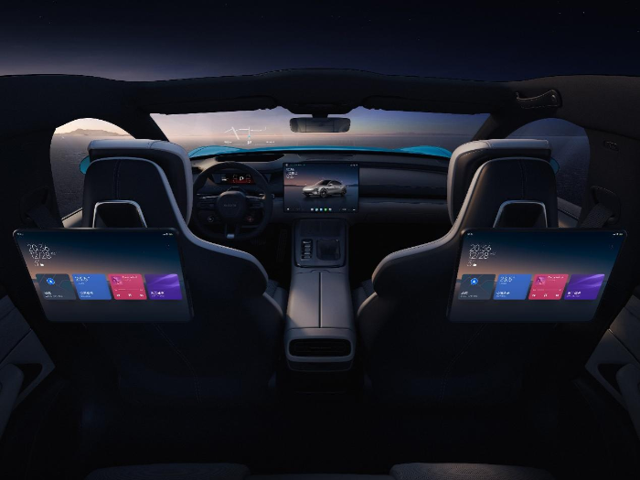 基于“以人為中心”的座艙交互架構(gòu)以及小米澎湃OS操作系統(tǒng)的加持,小米SU7實(shí)現(xiàn)從硬件到軟件的全面共享生態(tài),進(jìn)化成為移動(dòng)智能空間。該座艙搭載16.1英寸3K分辨率中控生態(tài)屏,56英寸HUD,車規(guī)級(jí)7.1英寸翻轉(zhuǎn)式儀表屏,采用2塊原生車機(jī)系統(tǒng)的小米Pad后排拓展屏,匹配驍龍8295座艙芯片,AI算力30TOPS,五屏聯(lián)動(dòng),帶來(lái)極致流暢的人車交互體驗(yàn)。