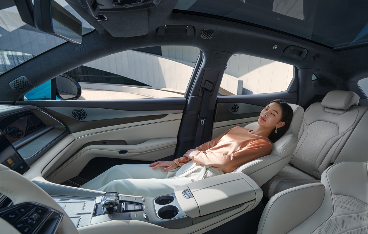 舒適豪華再進(jìn)化,雙排超舒適座艙座座皆是VIP。作為智能豪華超舒適大五座電動(dòng)SUV,全新騰勢N7座座皆舒適,升級(jí)了電動(dòng)四向調(diào)節(jié)方向盤、自動(dòng)防眩目外后視鏡、流媒體內(nèi)后視鏡,即使下雨,后方路況也清晰可見,結(jié)合5D云感人體工學(xué)座椅,為駕駛者帶來舒心、舒適的駕駛感受。而副駕則通過娛樂屏、柔光化妝鏡、座椅加熱、2擋吸風(fēng)式通風(fēng)、10點(diǎn)式按摩等配置,打造出女王專屬寵愛副駕體驗(yàn)。后排座椅舒享待遇同樣提升,新增電動(dòng)靠背調(diào)節(jié)、2擋吸風(fēng)式通風(fēng)、10點(diǎn)式按摩及仰望同款后排扶手屏,夏天打開座椅通風(fēng)無吹風(fēng)不適感,輕觸扶手屏開啟一場按摩療愈,加上CTB技術(shù)帶來的寬大空間優(yōu)勢,使全新騰勢N7的尊享待遇與百萬D級(jí)行政豪車相當(dāng)。