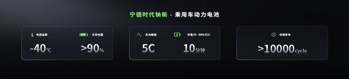 鈉新乘用車動(dòng)力電池的能量密度達(dá)175Wh/kg,為當(dāng)前全球鈉電最高,比肩磷酸鐵鋰電池;支持峰值5C的充電速率和500公里續(xù)航,實(shí)現(xiàn)超1萬(wàn)個(gè)循環(huán)的壽命,同時(shí)大幅降低維護(hù)成本。在安全性上,鈉新電池從材料本征層面消除電池?zé)崾Э刂械闹家蛩?,?shí)現(xiàn)電池安全從"被動(dòng)防御"到"本質(zhì)安全"的跨越式突破。
