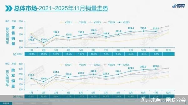 車市正進(jìn)入平穩(wěn)發(fā)展階段。12月8日,中國汽車流通協(xié)會乘用車市場信息聯(lián)席分會(以下簡稱“乘聯(lián)分會”)發(fā)布的數(shù)據(jù)顯示,2025年前11個月零售2148.3萬輛,整體保持增長。不過,今年11月車市零售量同比、環(huán)比均出現(xiàn)下滑?!?1月乘用車市場銷量環(huán)比出現(xiàn)下降,是比較少見的。”乘聯(lián)分會秘書長崔東樹認(rèn)為,今年上半年,我國乘用車市場銷量實現(xiàn)較快增長,下半年車市增長需回到合理、穩(wěn)定的狀態(tài)。車市進(jìn)入平穩(wěn)期有利于市場長期穩(wěn)定發(fā)展,預(yù)計今年零售將增長5%。