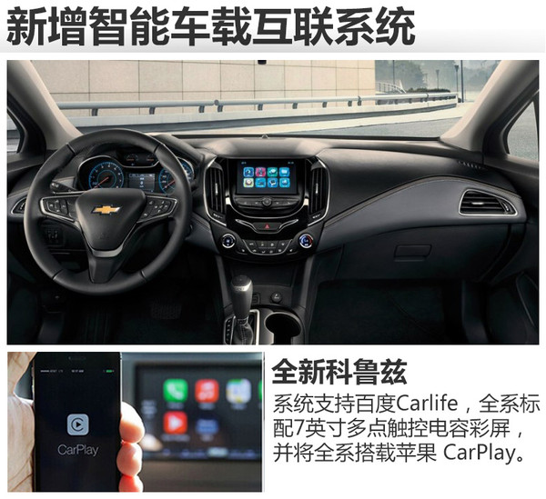 在配置方面,新車搭載了新一代MyLink智能車載互聯(lián)系統(tǒng),支持百度Carlife,全系標(biāo)配7英寸多點(diǎn)觸控電容彩屏,并將全系搭載蘋果 CarPlay。全新科魯茲還將新一代安吉星Onstar智能行車伙伴和4G LTE原裝集成車載Wi-Fi,可同時(shí)接入多個(gè)設(shè)備。