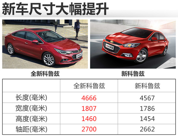 全新科魯茲采用通用全新中級(jí)平臺(tái)打造,整車長(zhǎng)寬高分別為4,666*1,807*1,460毫米,軸距為2,700毫米。車身長(zhǎng)度與軸距相比現(xiàn)款車型,分別增加99和38毫米。對(duì)于同級(jí)別車型大眾速騰,全新科魯茲車身長(zhǎng)度與軸距分別超出11和49毫米。乘坐空間將得到進(jìn)一步的提升。