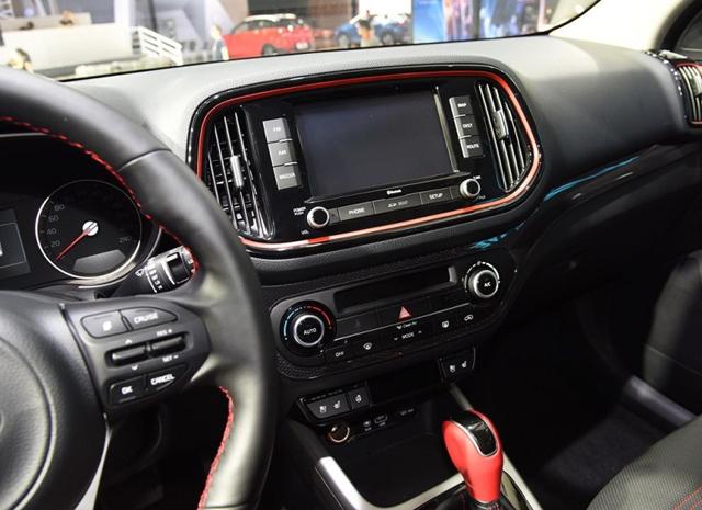 內(nèi)飾方面,新款KX3主要針對前臉部分進(jìn)行了優(yōu)化設(shè)計仍然保持了起亞家族式設(shè)計風(fēng)格,黑色內(nèi)飾搭配紅色縫線及紅色飾條營造出車內(nèi)時尚而又運(yùn)動的內(nèi)飾氛圍。中控臺裝配有7英寸顯示屏,UI設(shè)計和界面較為簡潔,具備藍(lán)牙電話、車載導(dǎo)航、倒車影像等功能。