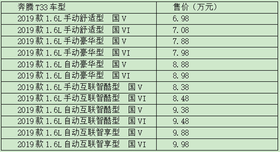 一汽奔騰T33正式上市 售價6.98-9.98萬元