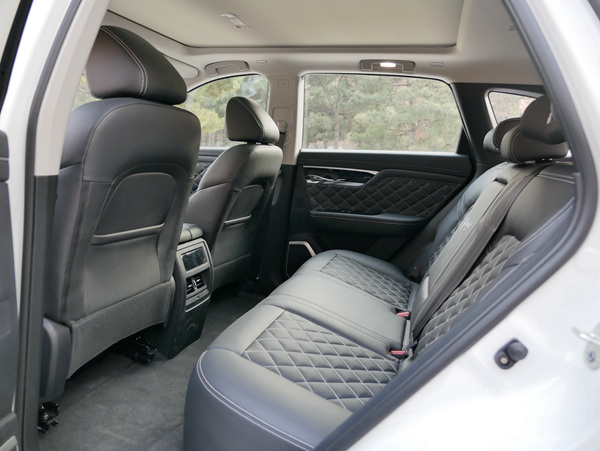 在配置上,新車將搭載人體工學真皮座椅。其中主駕具備一鍵休閑模式:座椅自動后滑,靠背下調,同時開啟波浪式按摩。副駕駛“女王副駕”配備按摩、6連桿結構腿托、四向腰托,支持座椅后滑、靠背下調至29°等功能。新車后排座椅靠背將具備兩級可調和比例放倒功能。