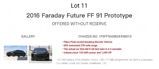 兩輛FF91原型車被掛網(wǎng)拍賣