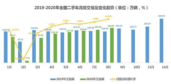 相比新車市場,二手車市場表現(xiàn)不俗。8月,全國二手車市場交易量為133.67萬輛,環(huán)比增長5.96%,同比增長11.52%。中國汽車流通協(xié)會信息部主任李鑫表示,8月,二手車市場延續(xù)了“淡季不淡”的態(tài)勢,銷量迎來年內(nèi)的新高。其原因在于,進(jìn)入第三季度,各行業(yè)逐漸開始進(jìn)入旺季,上半年受疫情影響積壓的消費(fèi)需求逐步開始釋放,二手車市場表現(xiàn)好于預(yù)期。