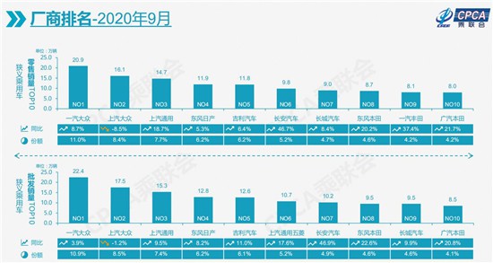9月,主流合資品牌零售同比增長約7%,環(huán)比8月增長約12%;其中,日系品牌零售份額為24.5%,低于德系26%的占比;美系品牌份額增加1.4個百分點,達到10.0%。