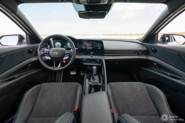 內(nèi)飾部分,伊蘭特N依舊保留了現(xiàn)代家族的雙聯(lián)屏布局,中控臺(tái)采用大面積皮革包袱。為進(jìn)一步突出運(yùn)動(dòng)屬性,新車的方向盤、門飾板以及座椅等處,還加入了翻毛皮材質(zhì)。